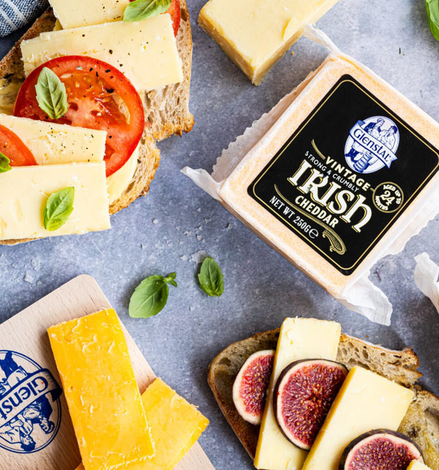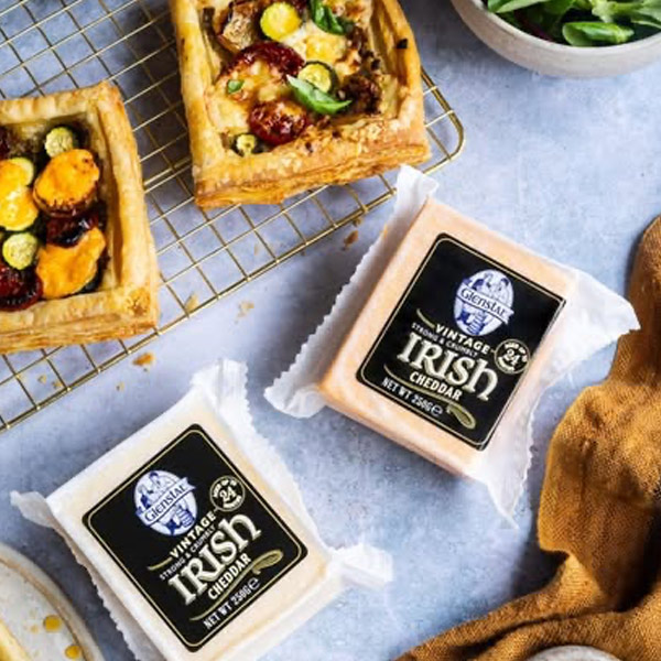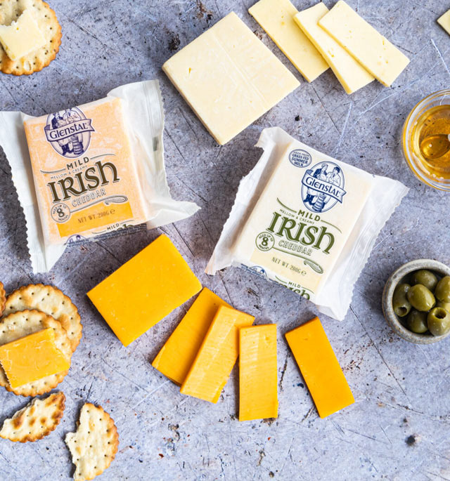 Glenstal’s award-winning range of cheddar cheeses is made from the rich, creamy milk of grass-fed Irish cows. From mild and creamy to extra mature and full-bodied, every block reflects Glenstal’s commitment to quality, tradition, and taste. Whether sliced, melted, or served as is, Glenstal cheddar delivers flavour you can trust — every time.