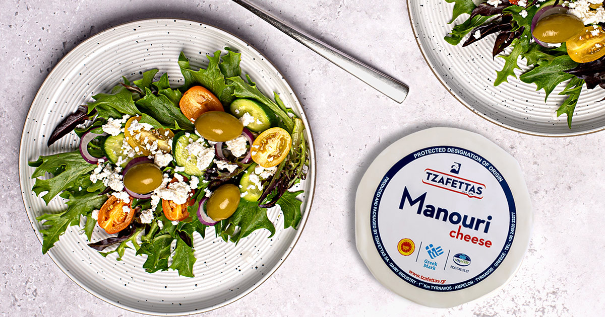 Manouri is a traditional Greek cheese made from sheep’s or goat’s milk whey, blended with cream for a luxuriously soft texture. Mild, slightly tangy, and delicately sweet, it’s incredibly versatile — perfect crumbled over salads, paired with fruit and honey, or tucked into pastries. Whether grilled, spread, or stirred into pasta, Manouri delivers smooth, rich flavour in every bite. A staple of refined Mediterranean cuisine.